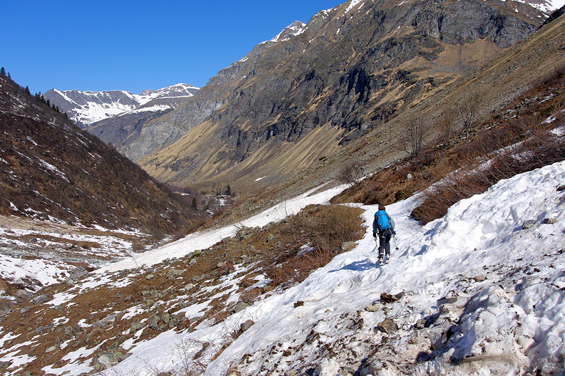 Descending into the tight little valley of the "Doron de Champagny". |