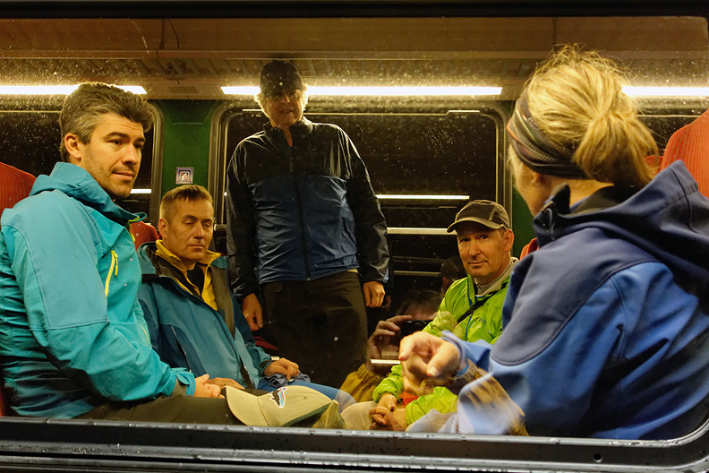 In the train tunnel en route to the Jungfraujoch, the group looks a bit skeptical about the day's prospects. |