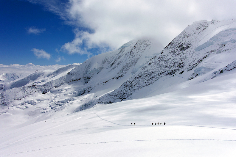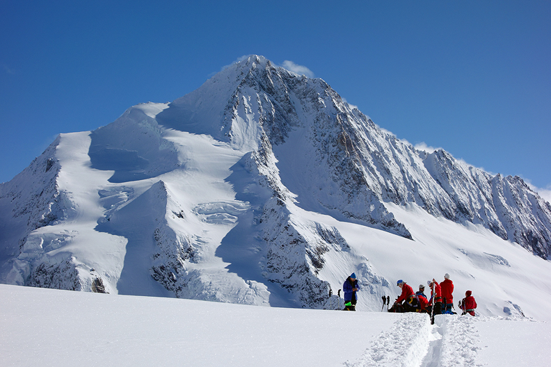 At the Grünhornlücke, we are rewarded with a great view of the Finsteraarhorn. |