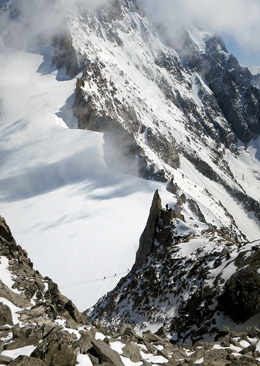 The traverse follows a ridge back toward Point Helbronner. We had time and good conditions to continue along this ridge to extend the climb. |