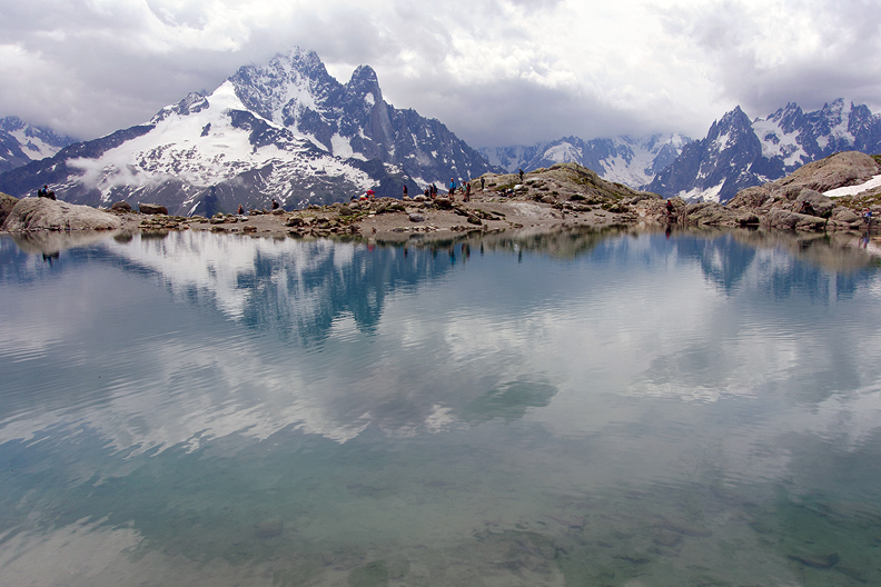 Clouds coming in over the main Alpine ridge. This view from Lac Blanc on our way down. |