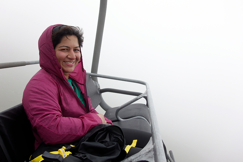 We walked over the the Index lift to descend, and the fog and rain met us here. |