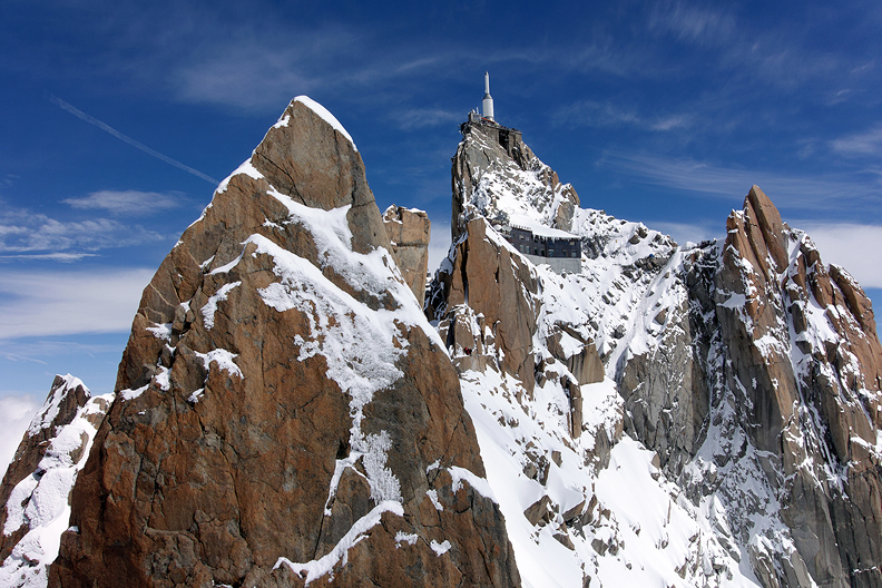Our first day was forecast to be good in the morning but deteriorating as the day progressed. We needed a relatively quick climb. The Traverse of the Aiguilles Crochues was our choice. A rather delayed start was required as lightening from the previous evening had created a "technical problem" and a late lift opening. |