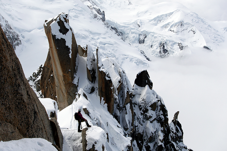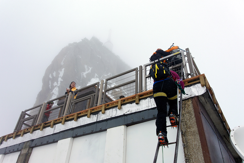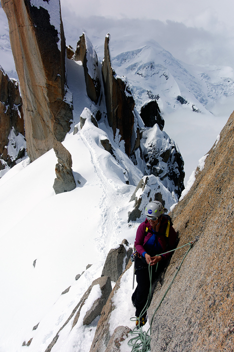 And our last day... The weather in the valley was still under a gray overcast. But up high, not so bad. With only a small window of descent weather we needed something quick. The Arete des Cosmiques. |