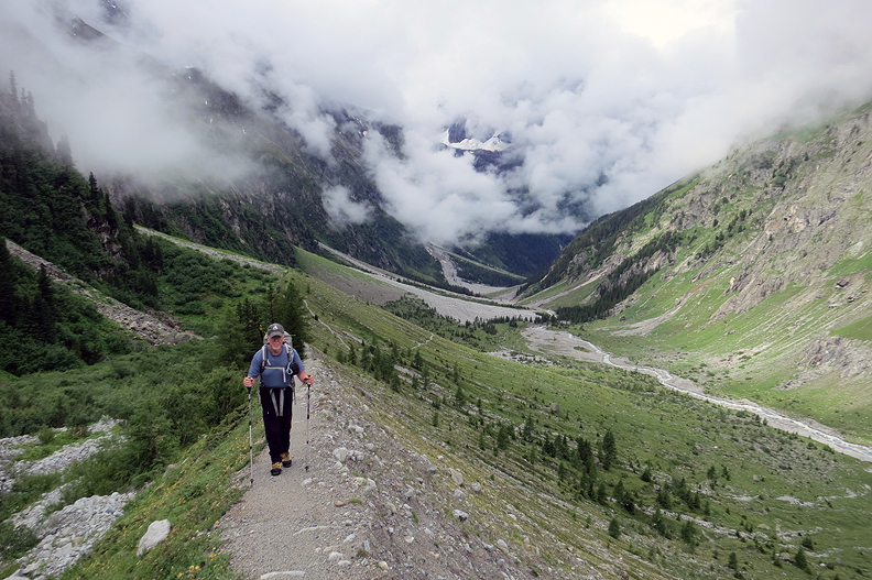 Our first day was a tough one, and very wet indeed. Andy and Kathy headed up the Gasteretal from Kandersteg, and hiked a loooong way up to the Kanderfirn glacier, and ultimately the Mutthorn hut. |