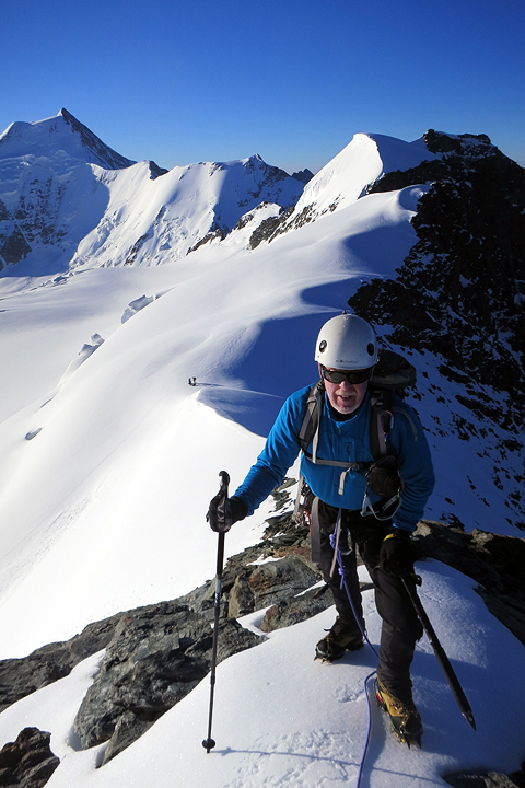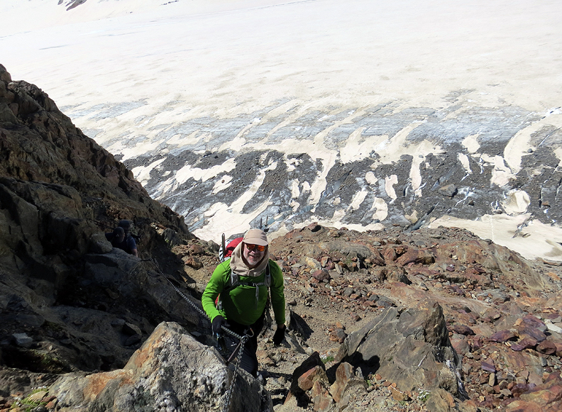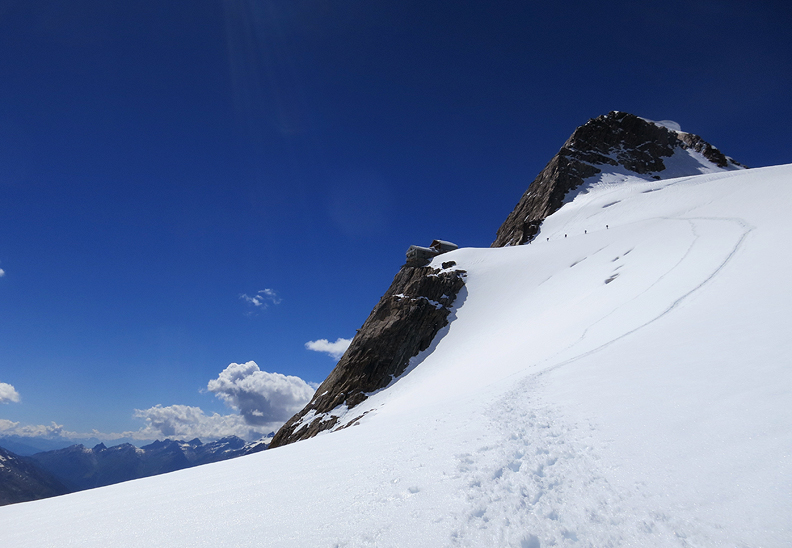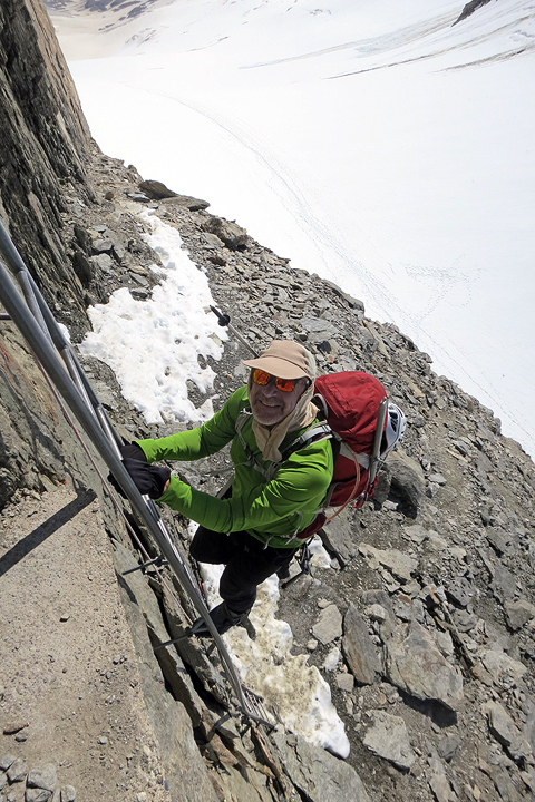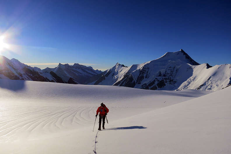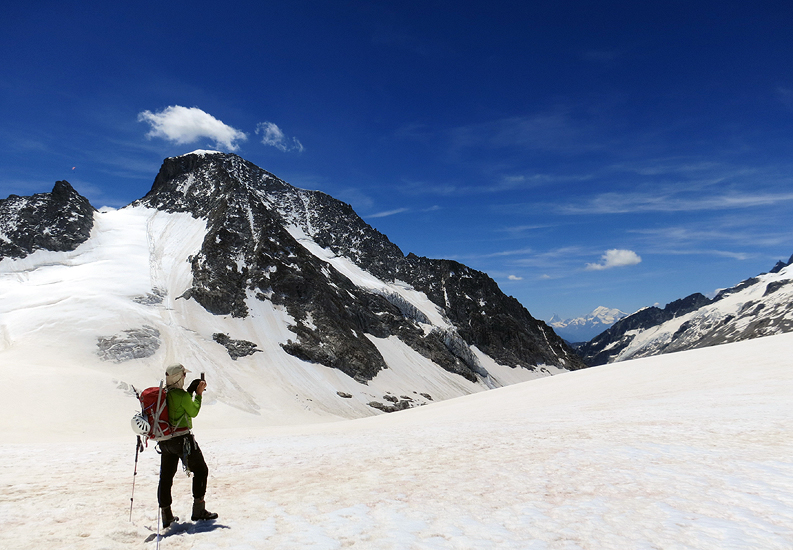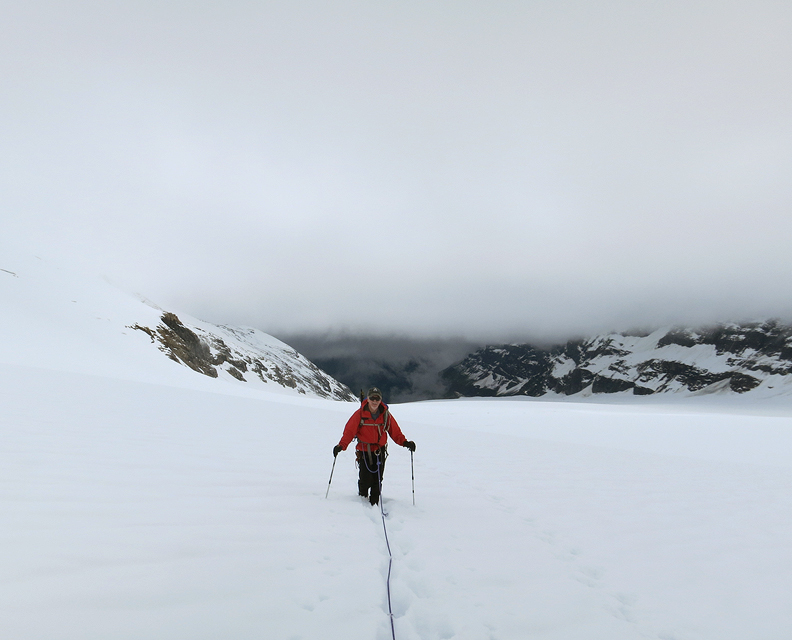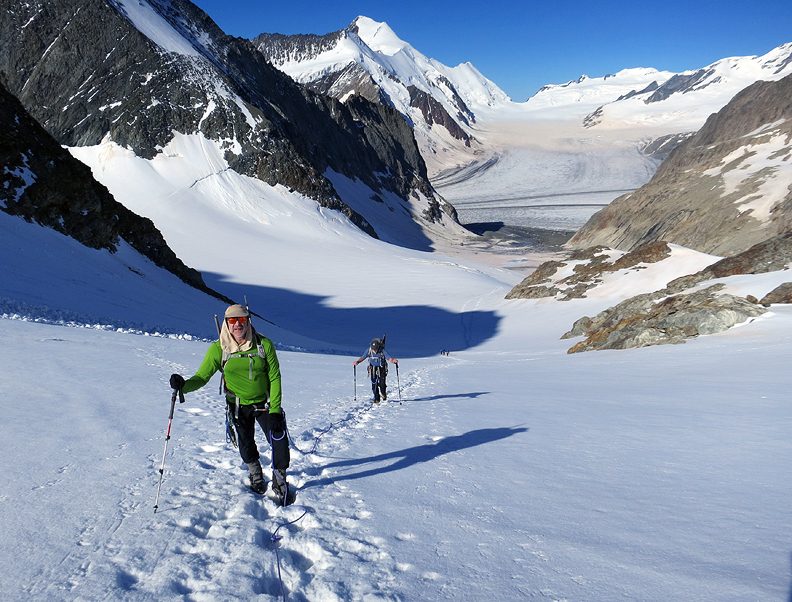 The next day we head up toward the Grünhornlücke en route to the Finsteraarhorn hut. |
