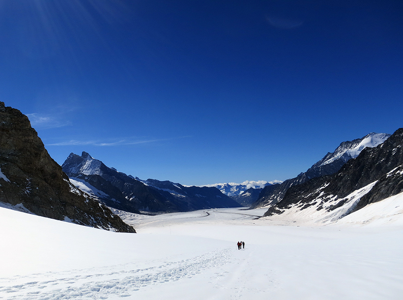 John, Andy and I headed down the Jungfraufirn glacier from the train station into what promised to be a very warm day. |