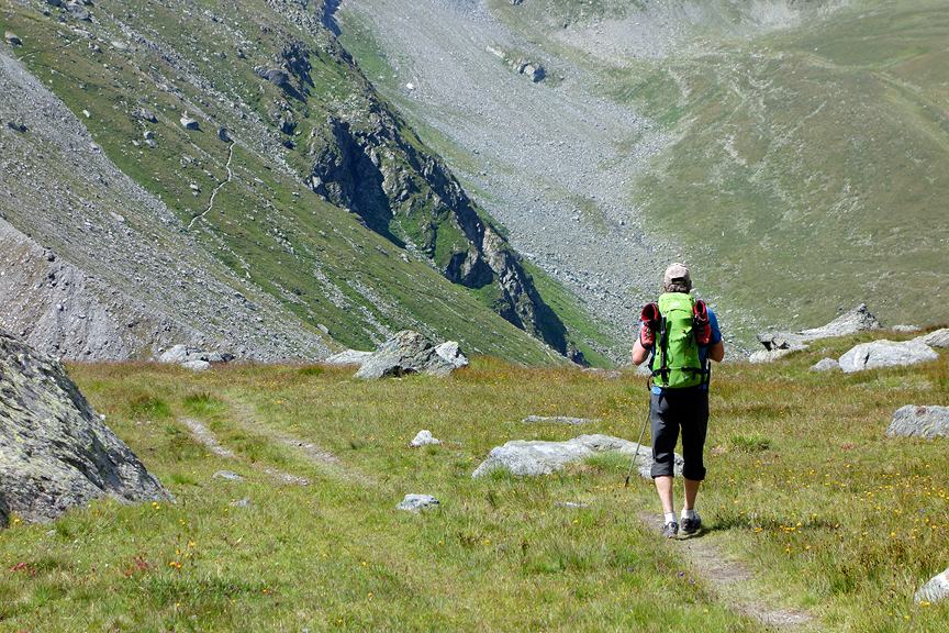 Hiking out. Fortunately we brought in our light shoes for the big walk out. |