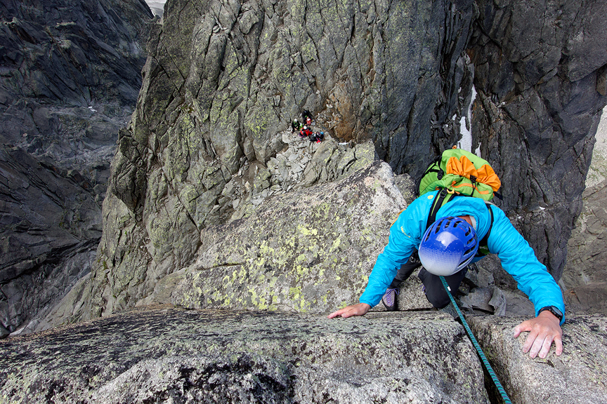 With our last day, we climbed the Aiguille du Peigne. We did the Eperon Minettes start and finished with the Normal Route. The weather started a bit cloudy but ended well. |