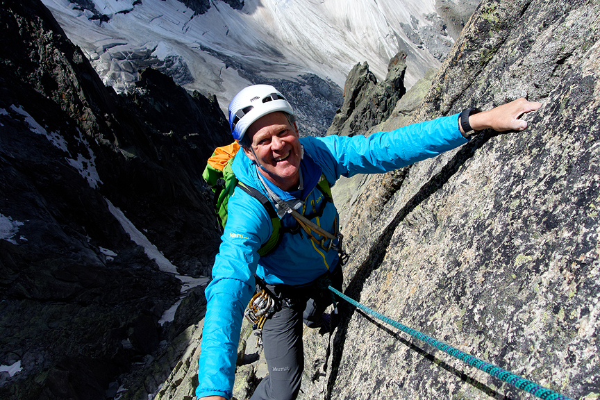 However, things were looking a bit better on day 4. We had an enjoyable day-climb on Gaspard Premier on Pointe Gaspard in the Aiguilles Rouges. |