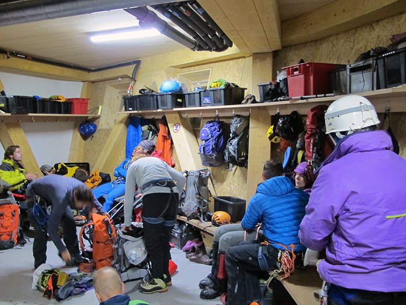 We took a short rest in the infamous boot-room of the Gouter hut, about 3 hours into our climb. |