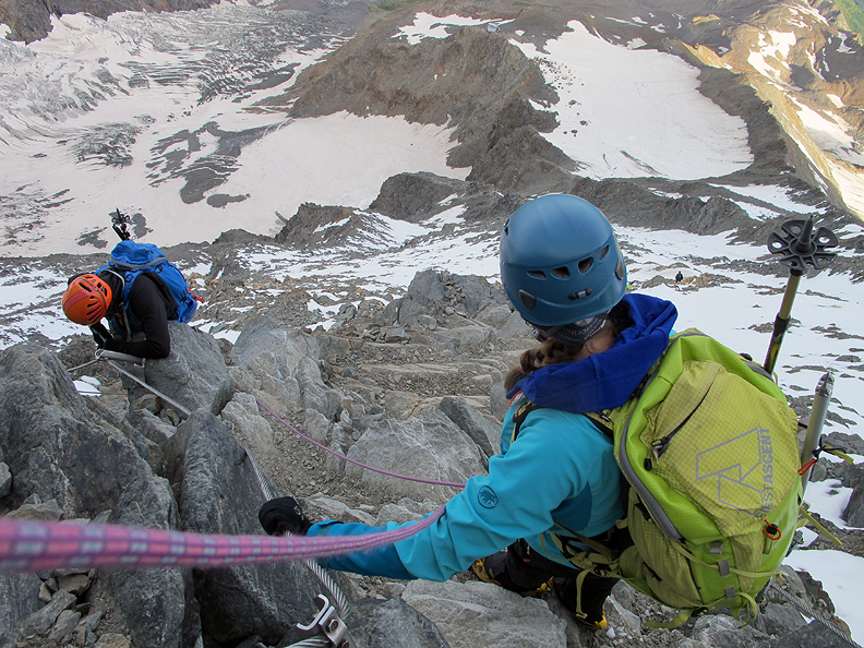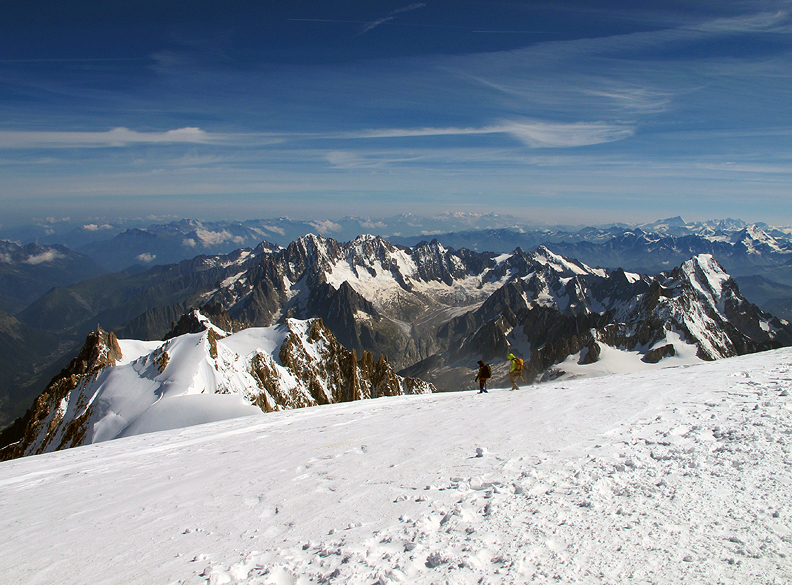 The next morning we left the hut after breakfast for an early morning descent of the Gouter ridge. Nice to get it done in the cool hours. |