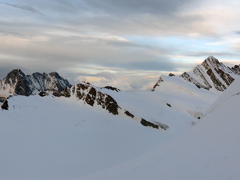 As is the pattern this season, the forecast was not brilliant for the start of our climbing trip together. But the evening before our first climb, there was some reason to hope for a "sucker hole" big enough to climb the Mönch in the next day. |