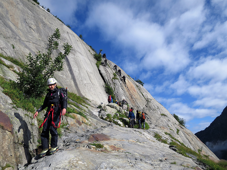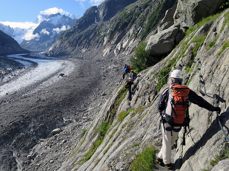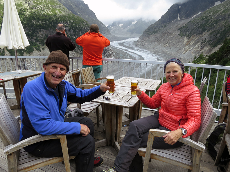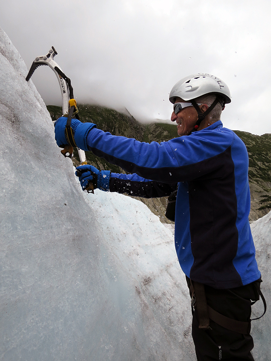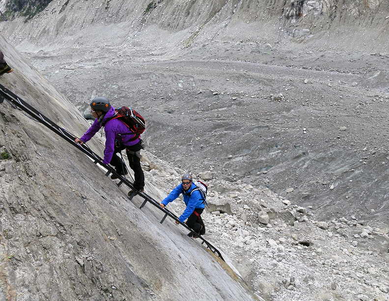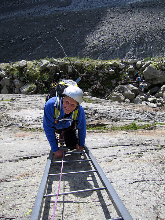 On our first day, we tromped around on the famous Mer de Glace. However, the first task (a big one), get down those hundreds of feet of steep ladders to the ice! John showing his "game face". |