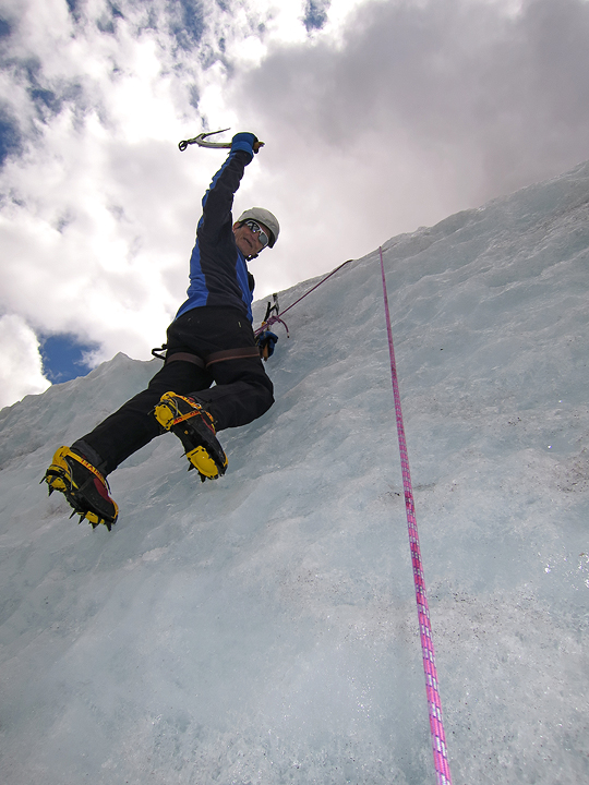 Wandering at our leisure, we found a little wall to practice some steep ice climbing techniques. |