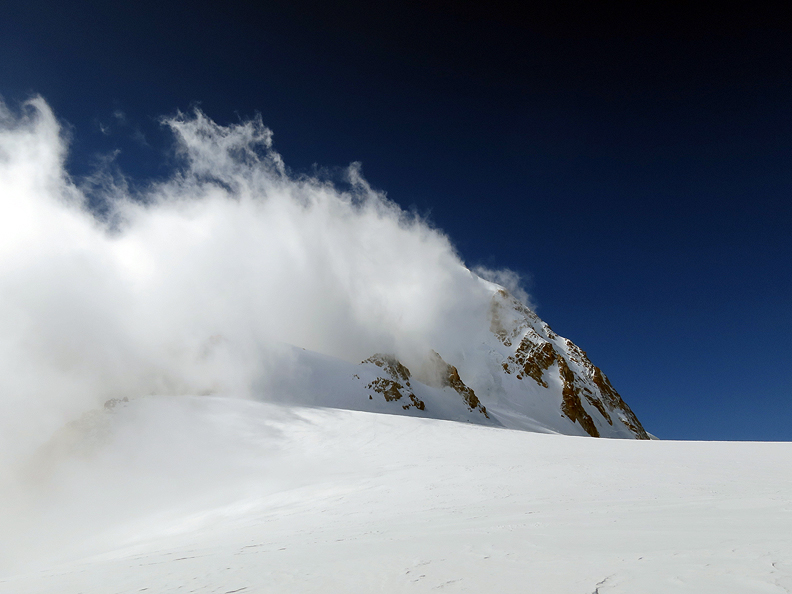 As we re-gained elevation below the Pointes Lachenal, we broke back out into bright sunshine. |