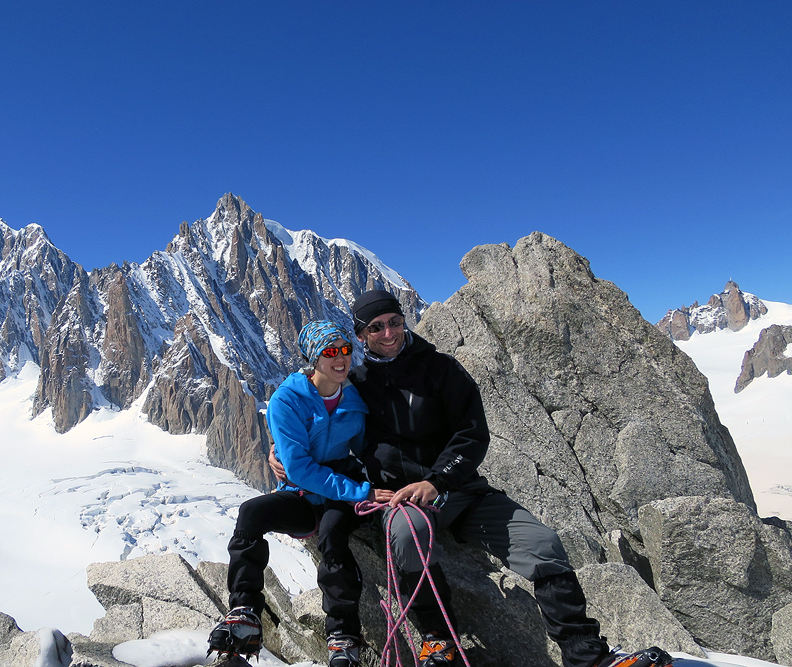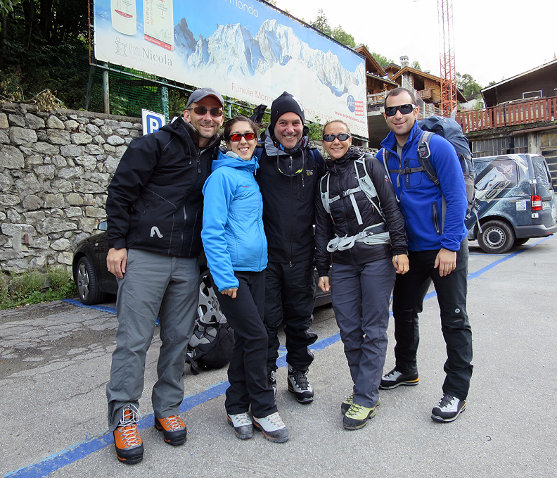 Jack Santo organized a group of friends to come to Chamonix this year, for a week of various adventures, including climbing, via ferrata-ing, and general fun. Kathy and Mark were both happy to be part of the mix! |