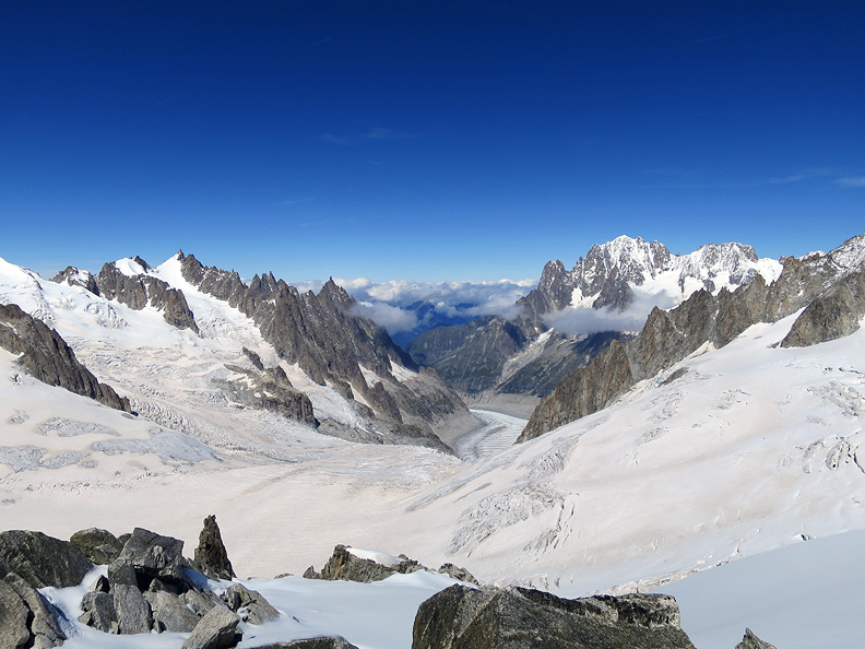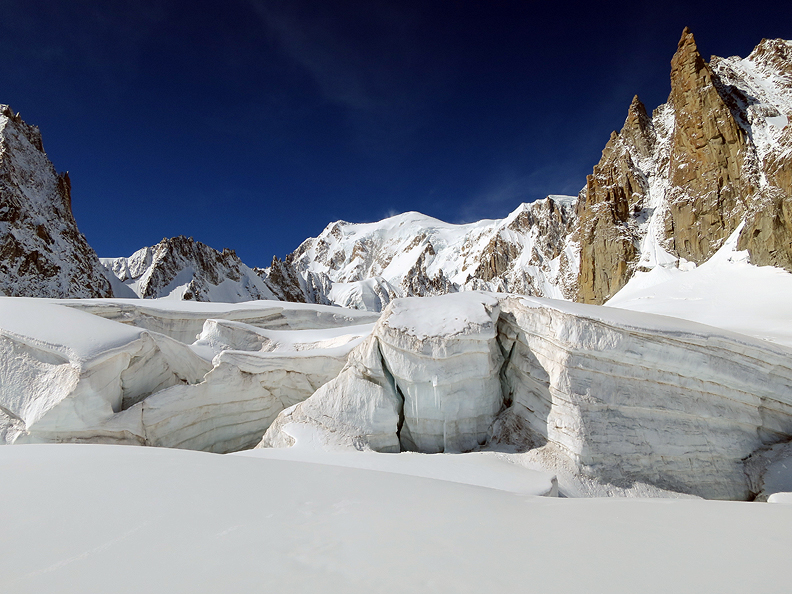 Gorgeous views of Mont Blanc from this high glacier cul-de-sac. |