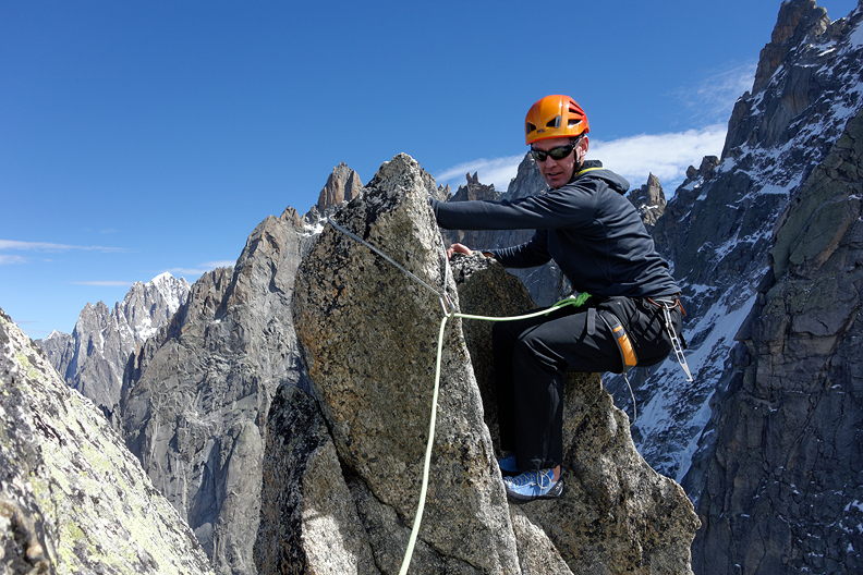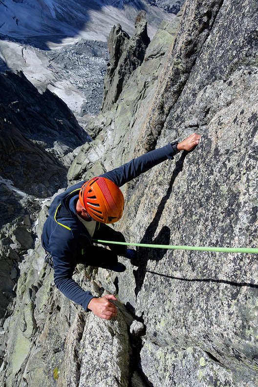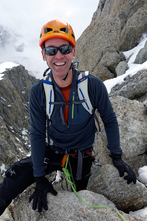 Martin enjoying the fine rock on the Arete. |