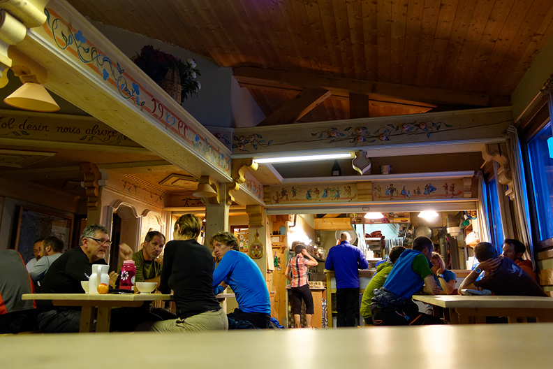Almost dinner time at the Refuge des Cosmiques. |