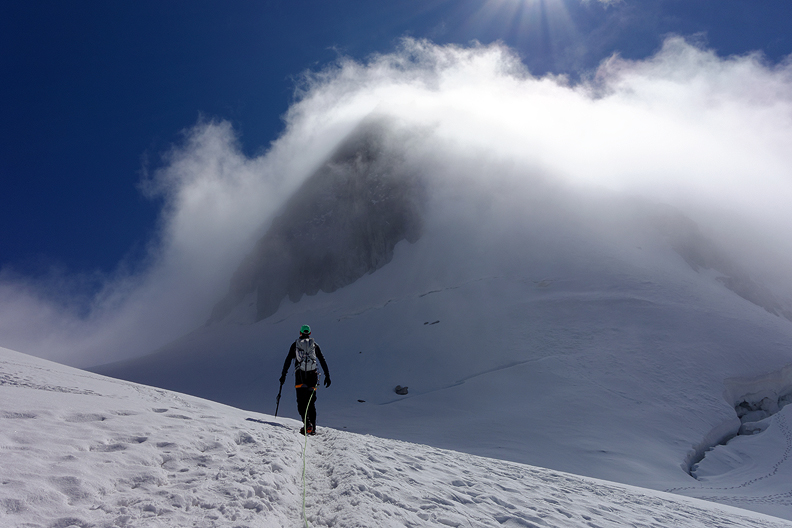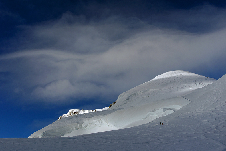 Looking up towards Mont Blanc from the Col de la Brenva. |