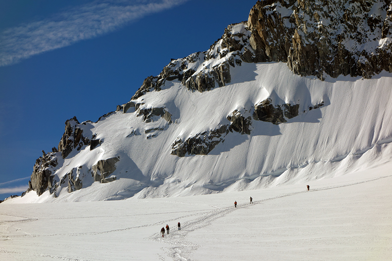 Climbers below the SE ridge of the Tour Ronde. |