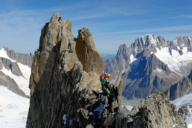 Exposed climbing on the crest. |