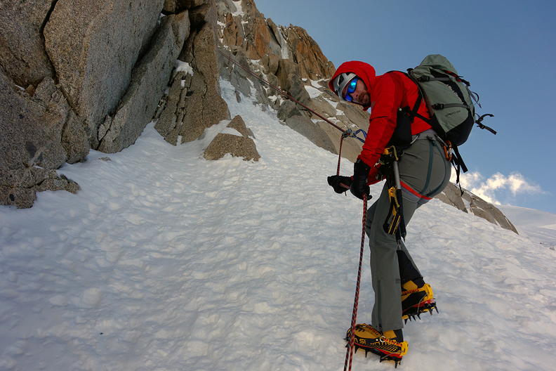 We took our first day for a Traverse of the Pointes Lachenal. Here, we are on the second "Pointe", with the third and hardest just behind us. |