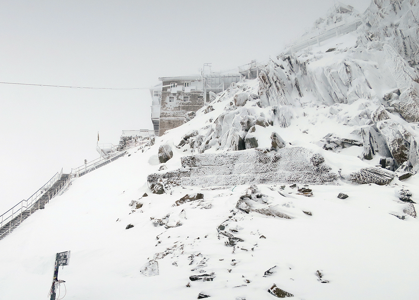 It was a rather wintry day! Visibility was nil, until we got a little break just when we needed it. |