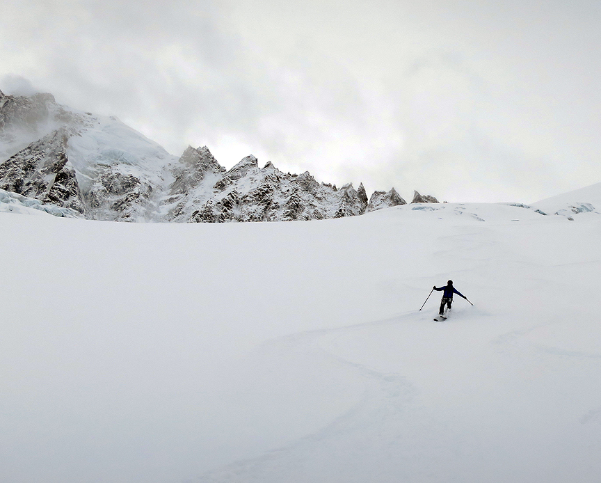 Great snow and even some views of the North Face of the Aiguille Verte, |