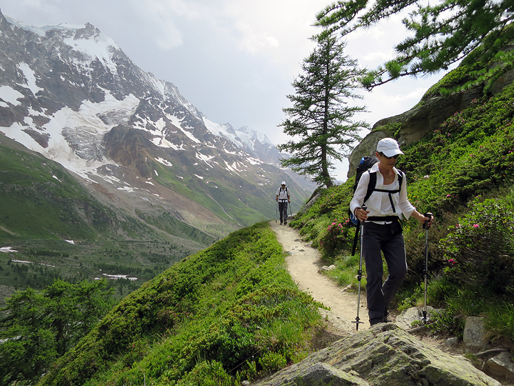 Once down into the Lotschental, we continued up through woods and meadows to the Anen Hut for our second night. |