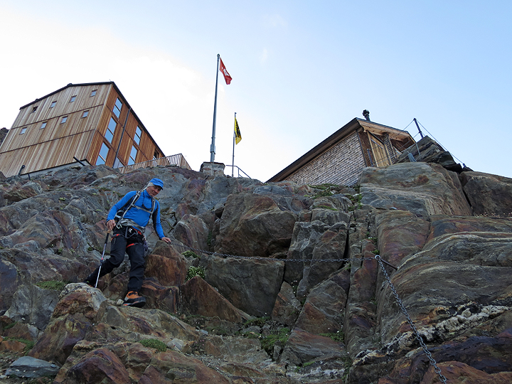 Our next night's hut (day 5 now) is the Finsteraarhorn hut, accessible by steep rocks equipped with cables and chains. |