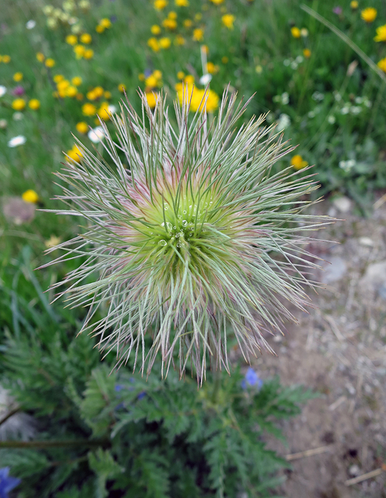This too proved temporary. By the time we left the ice behind for the last time, the clouds had lifted some, though it stayed gloomy all morning. Dana pauses to take advantage of the good flower photographing conditions. |