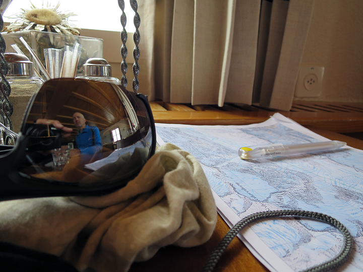 Reviewing the route and the week over a cup of coffee in the Berghaus Oberaar. |