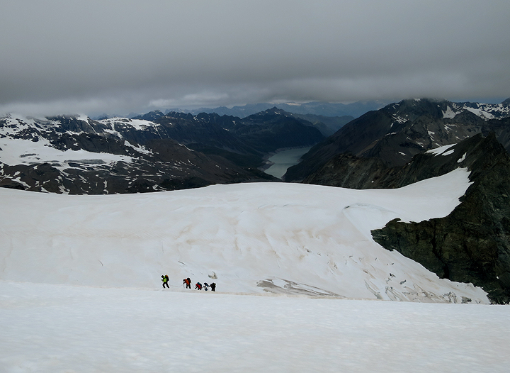 Day three, we are already high above the Chanrion and heading toward the Dix hut. |