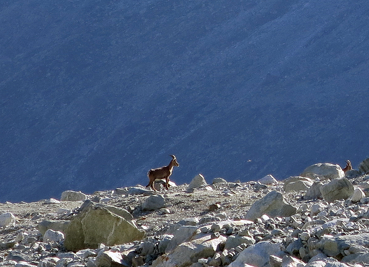 The iconic iron ibex of the Orny hut, in the early morning light of day 2. |