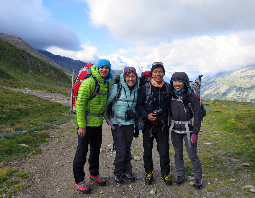 Kathy's second, and final Haute Route Glacier Trek this year was with a group of friends from the U.S., Jason and Allison Ng, and Jennifer Su Nishinaga and Brian Nishinaga. |