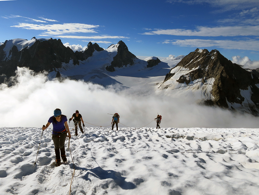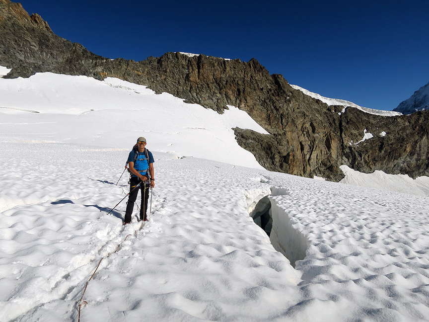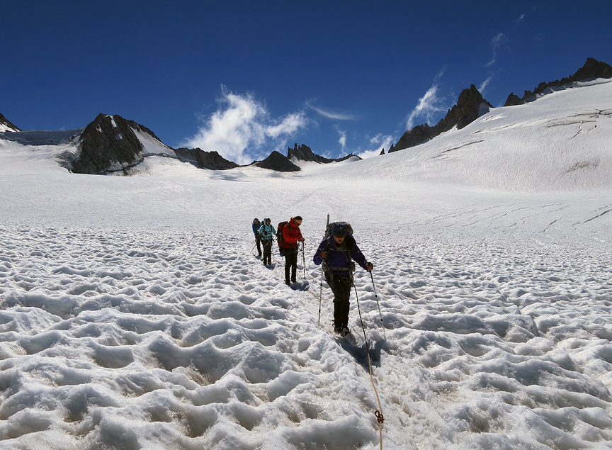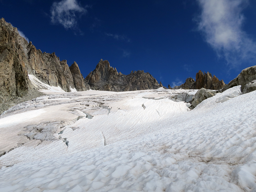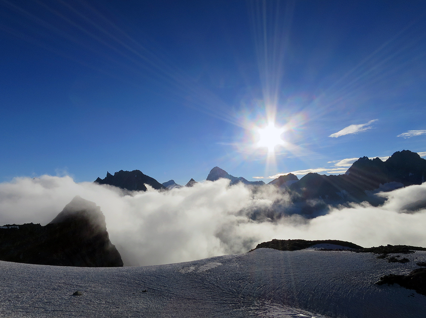 Another high point! The Tête Blanche, as the day gets hot already. Time to get down the glacier. |