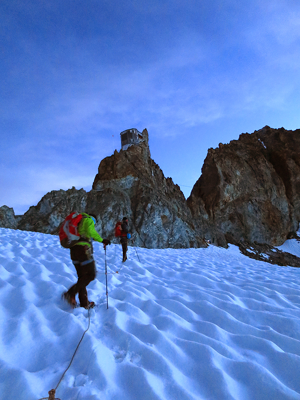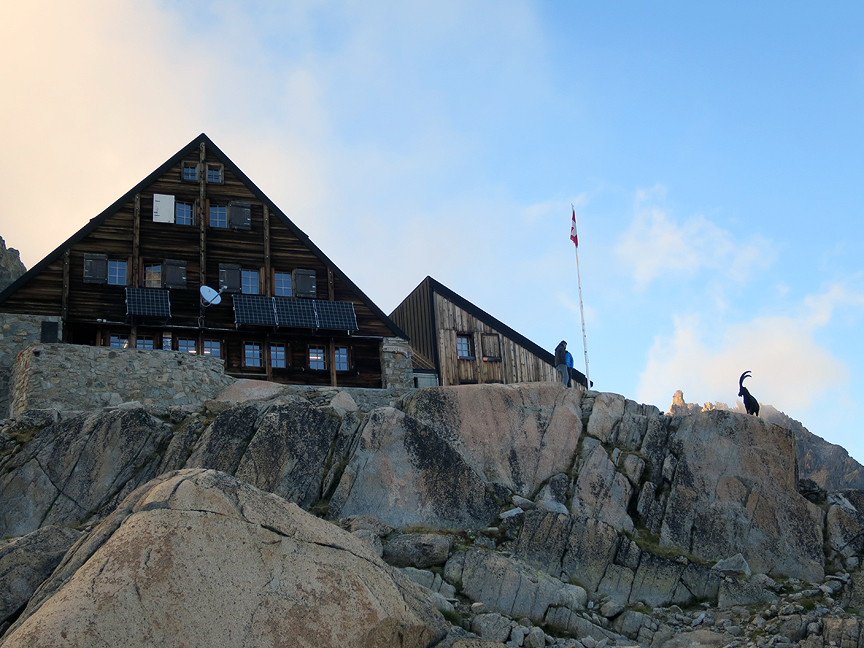We exit the glacier a few minutes above our first hut, the Cabane d'Orny. |