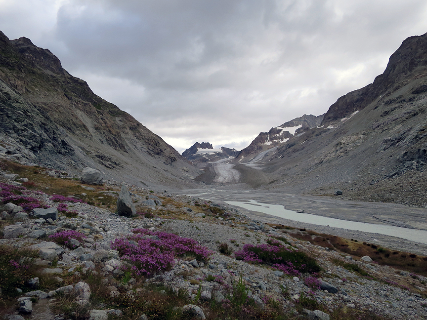 Rounding a corner, the toe of the mighty Otemma Glacier comes into view. It has receded noticeably in recent years. |