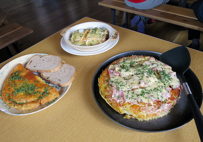 We felt we'd earned a real reward, in the form of a cheese-intensive hot lunch back at the hut. |