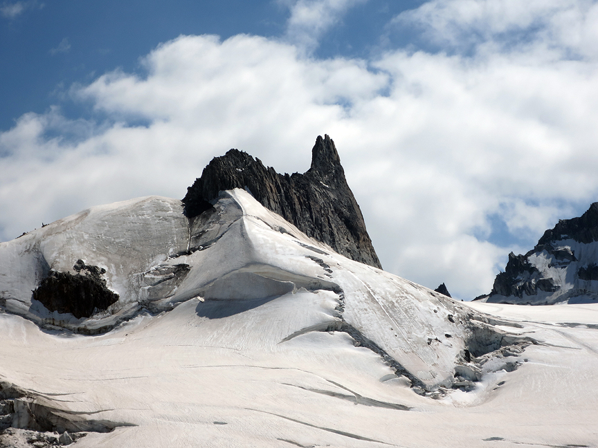 Our original objective was to be Mont Blanc. However, the recent heat wave, and continued hot weather made the ascent to the Gouter hut too dangerous. In fact, on our second day the rockfall hazard in the Grand Couloir caused the Gouter hut to close for the second time this summer. So, on to Plan B... |