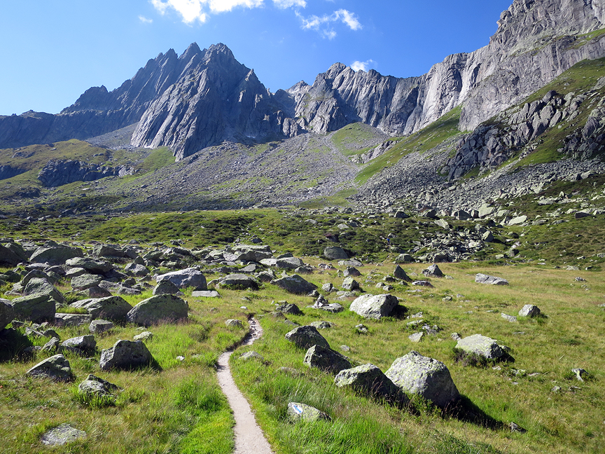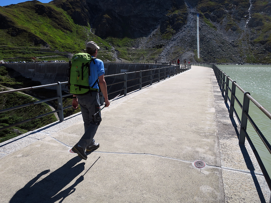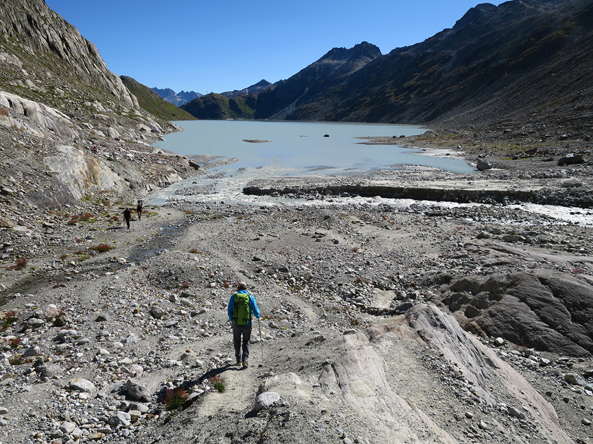 Finally, the glacier gives way to the lower valley. We continue our walk past the Oberaarsee to the dam, and car park, at the far end. |