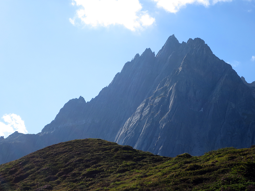 The Salbitschijen from near the Salbit hut. The South Ridge is the left-hand skyline. |