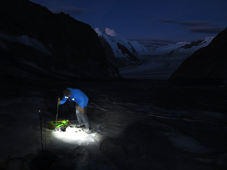 The next days climb was the Finsteraarhorn. Mouse over to see, more or less, the line. |