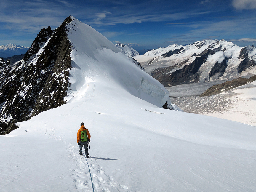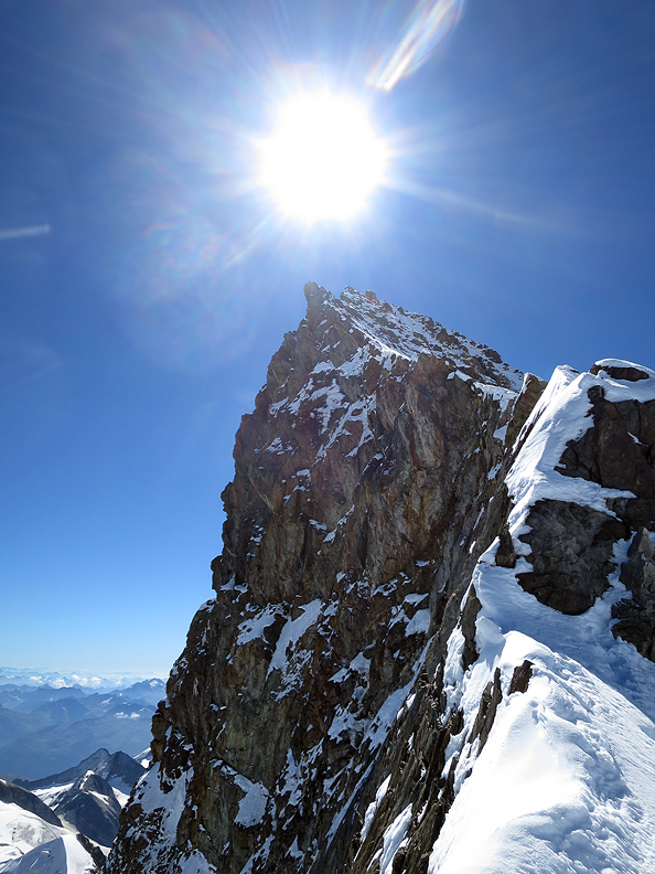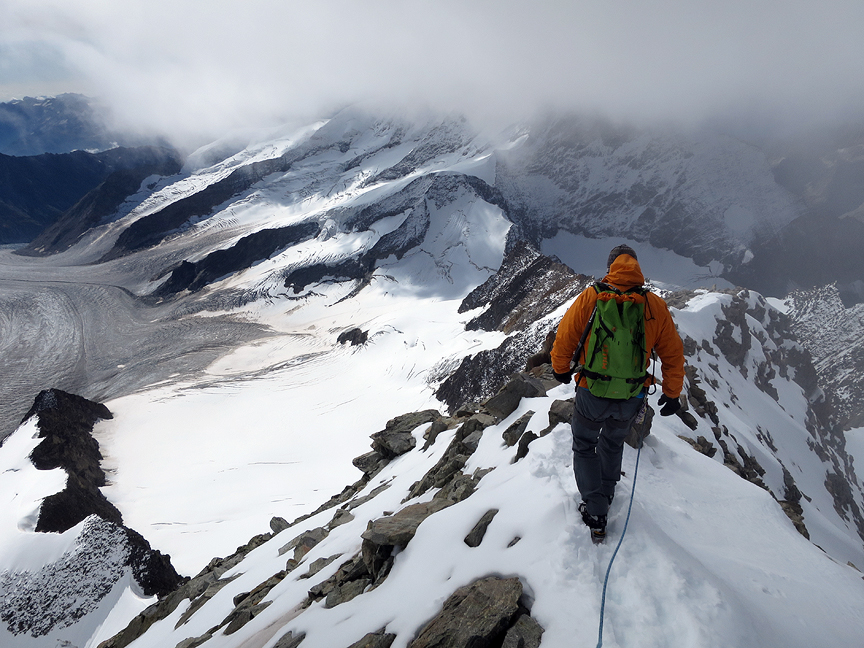 Looking up the NW Ridge from the Hugisattel. About 200 more meters to climb. |