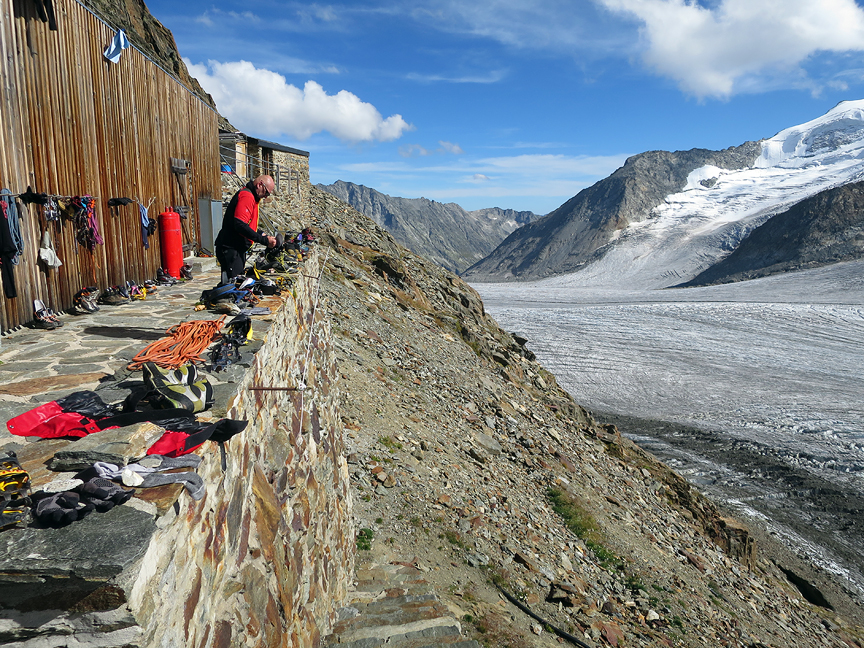 Finally, after a long walk, we arrive at the Finsteraarhorn hut. A big day. |
