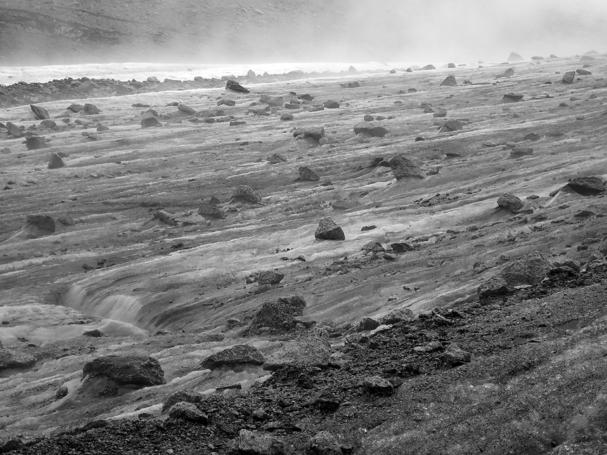Rock strewn glacier ice. |