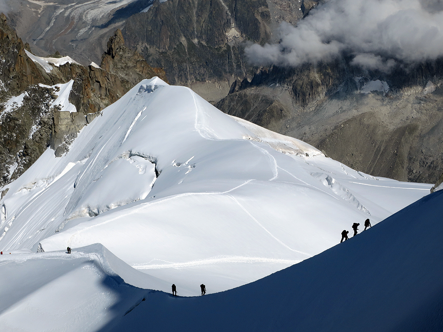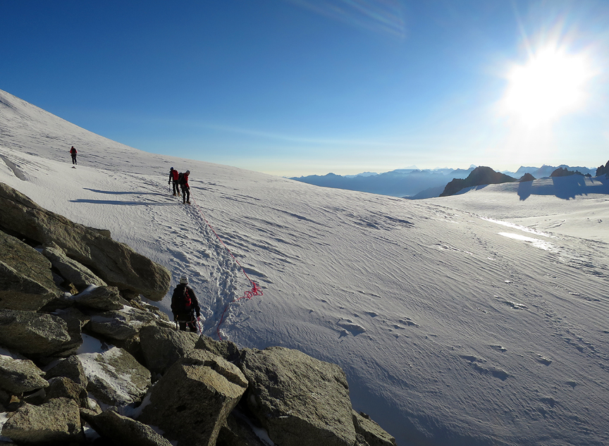 Other climbers near the start of our traverse. Mont Maudit and Mont Blanc du Tacul in the background. |
