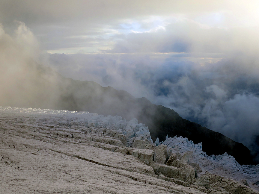 With our last 2 days, we climbed the Aiguille du Tour. The first of the 2 days was a hike up to the hut, largely in cloud. But, as forecast, it began to clear just after dinner. |